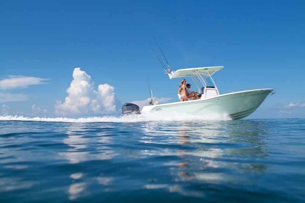 - T-Top with Canvas Awning, Rear Spreader Lights, Tulip Rod Holders (4) and LED Anchor Light